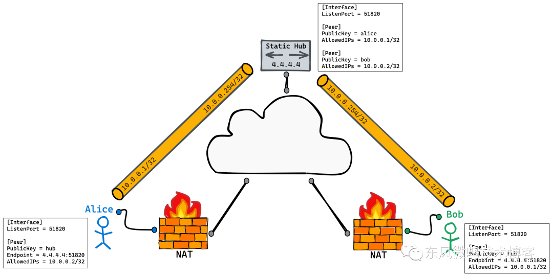 •WireGuard 只有 peer(对等节点)的概念,原则上没有 server 和 client 的区别