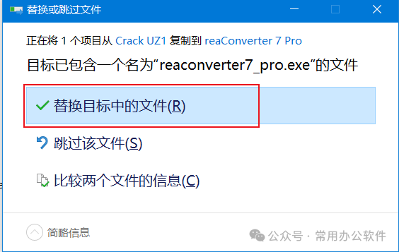 4、打开crack文件夹,将里面的激活补丁复制到软件安装目录中替换。选择替换目标中的文件,如图所示: