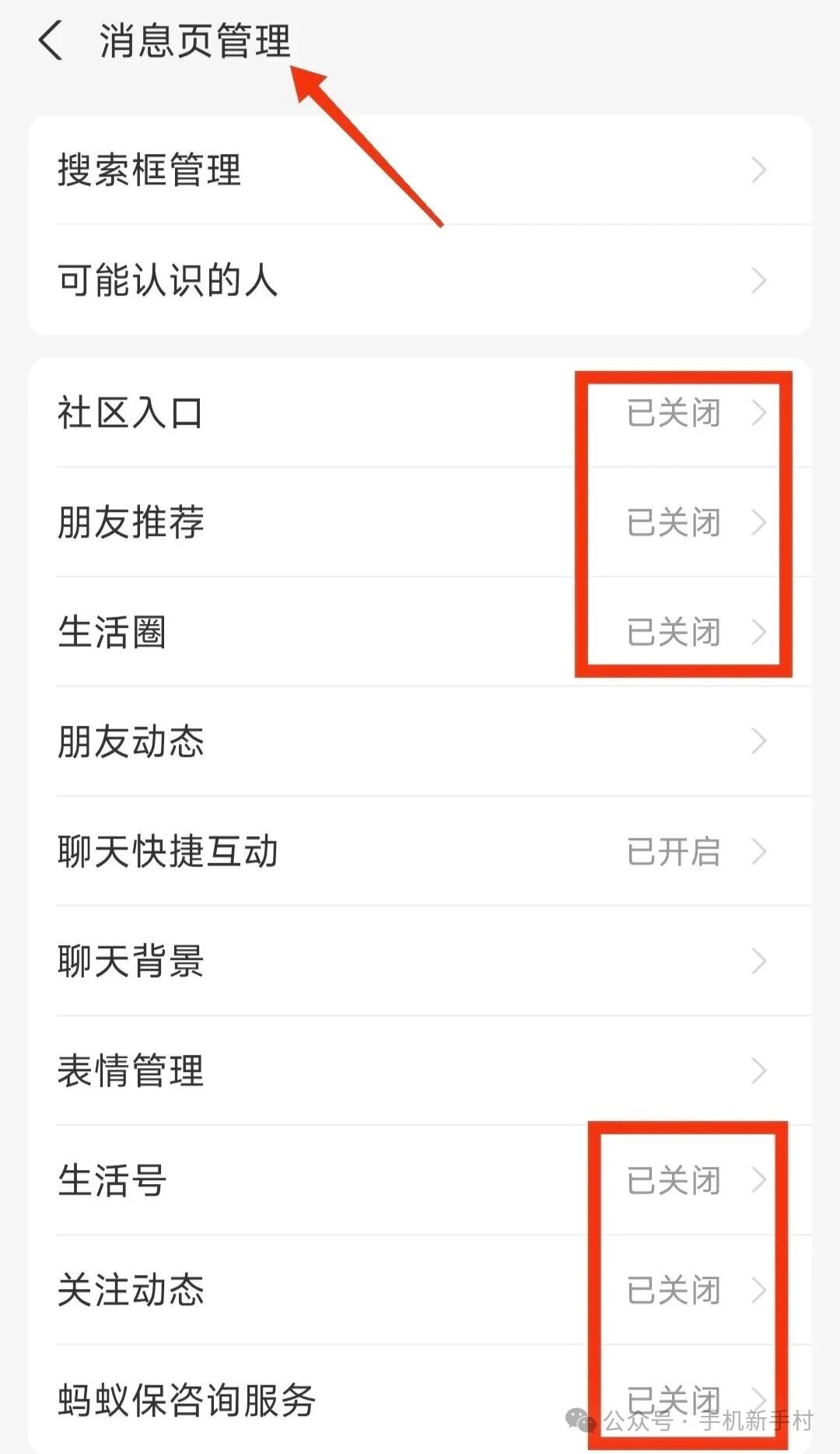 ▫️ 消息页管理:关掉「社区入口」「朋友圈」「生活圈」等社交功能,告别无关推送。