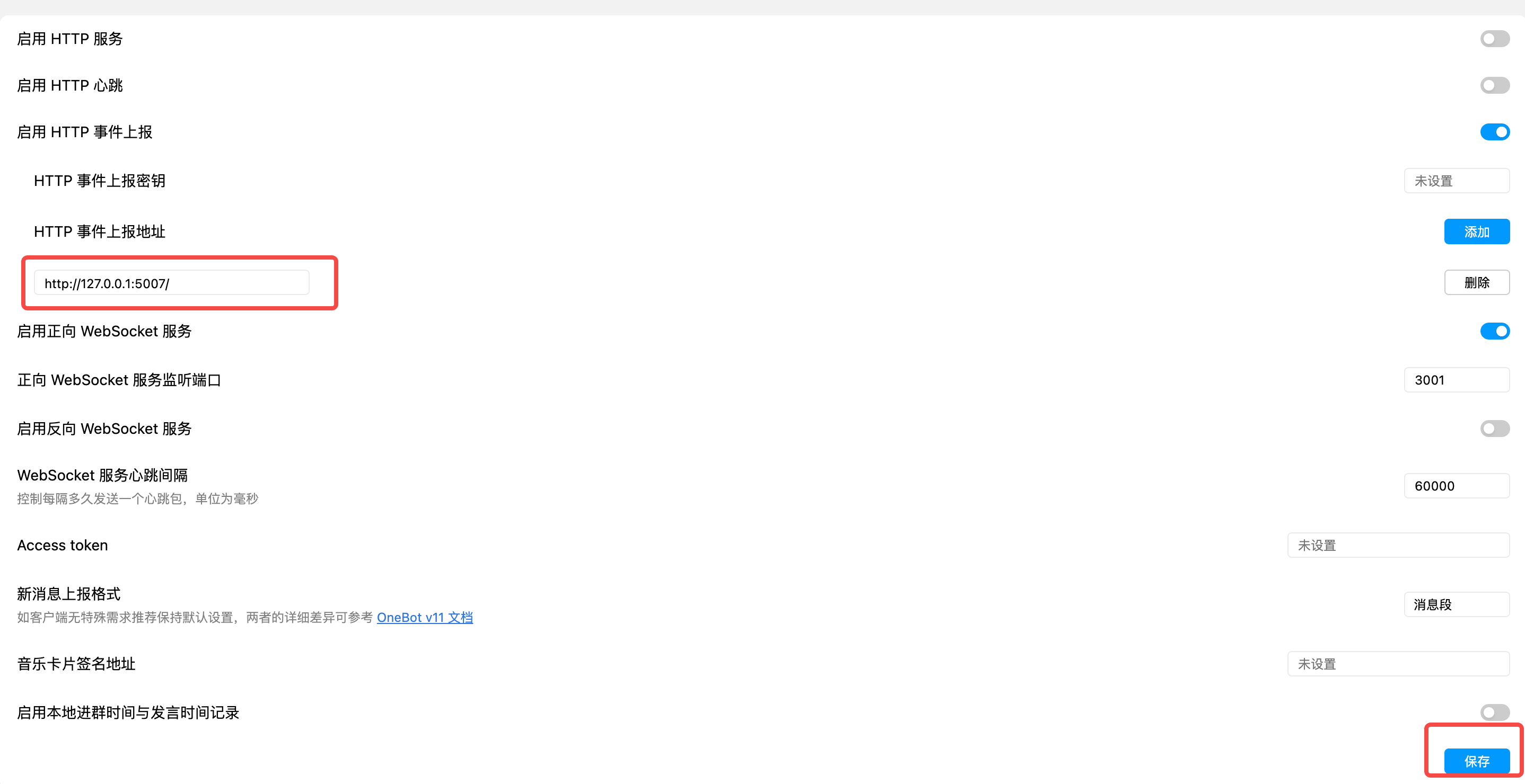 红框要设置一下,这里就是接收事件的 url。
