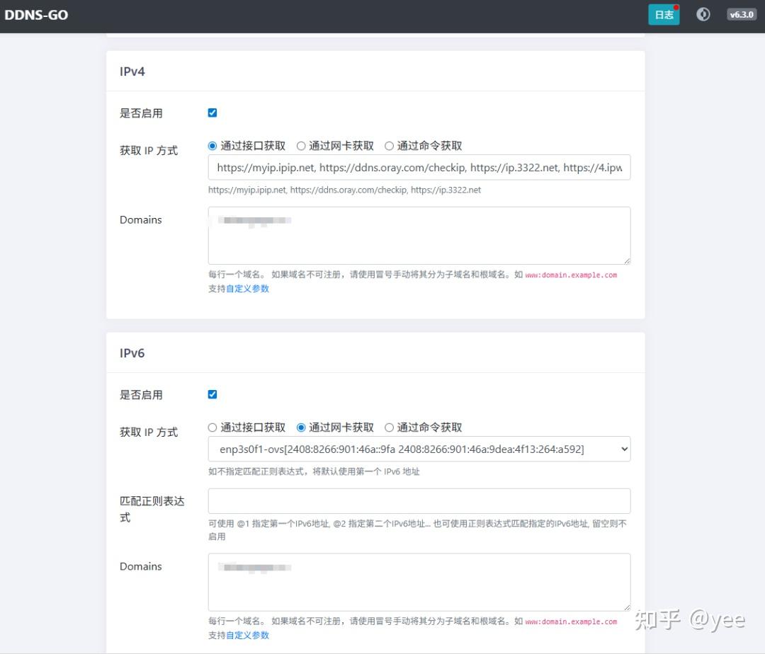 接下来填入你的域名,有IPV4公网就填入到IPV4卡片中,不知道有没有的就填入IPV6即可
