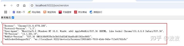 浏览器输入链接:localhost:9222/json/version