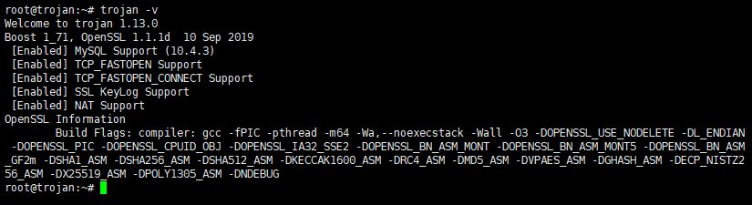 通过包管理工具安装的 trojan 版本为 1.11.0,可以手动将其版本升级至最新版 1.13.0,方法如下:
