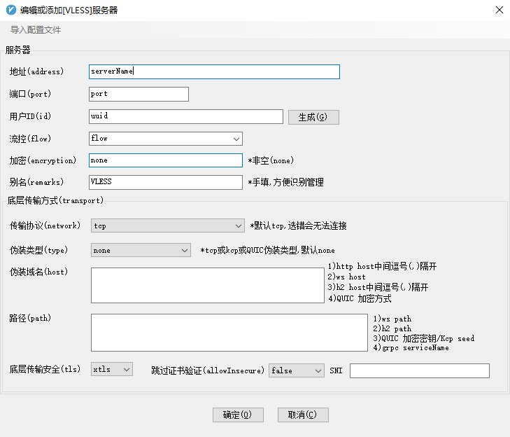 图.3 v2rayN 添加 VLESS 服务器输入窗口