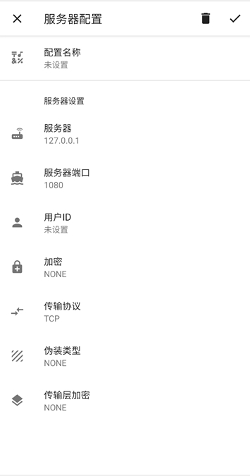 全部设置完成后,就可以点击最上面的对号图标保存配置,不需要的配置则可以点击垃圾桶图标删除。