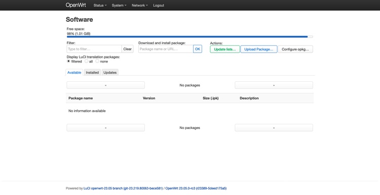 图.9 OpenWrt软件管理页面