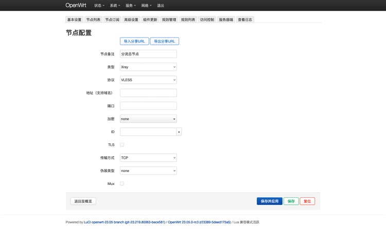 点击”节点列表”选项卡,选择添加节点或编辑现有”分流节点”,就会进入节点配置页面: