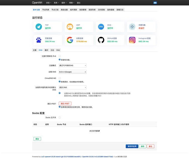 点击 passwall 菜单,就进入了插件主页面: