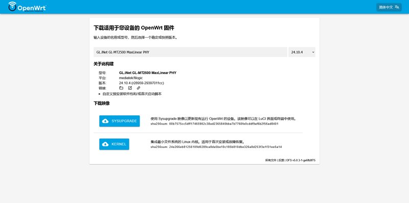 对于 MT2500 来说,刷官方固件最为简单也最为安全,不要相信论坛上提供的所谓最好用固件、优化固件之类的东西,其实都是官方固件的改版,然后连带安装一堆用不到的私货插件。我个人还是推荐刷 OpenWrt 的官方固件,然后根据需要安装插件。对于小白来说,可能觉得从论坛上下固件很直接也很简单,但事实上官方网站下载固件也并不复杂。