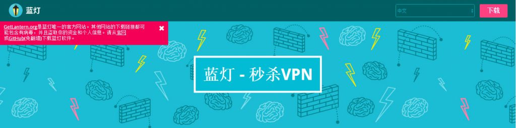 蓝灯可能是目前比较好用的免费VPN软件,其宣称采用P2P技术,如果全球有人使用了该软件,都可以作为代理服务端为他人服务。以上是中文网站的样子,与其他语言不同的是专门提示不要下载假冒的产品。软件可以从官网或者Github下载,因为Github还没有被墙,所以理论上还是可以用到蓝灯。软件支持windows平台、Mac OS、Linux和Android,使用起来也比较容易,都是自动代理。