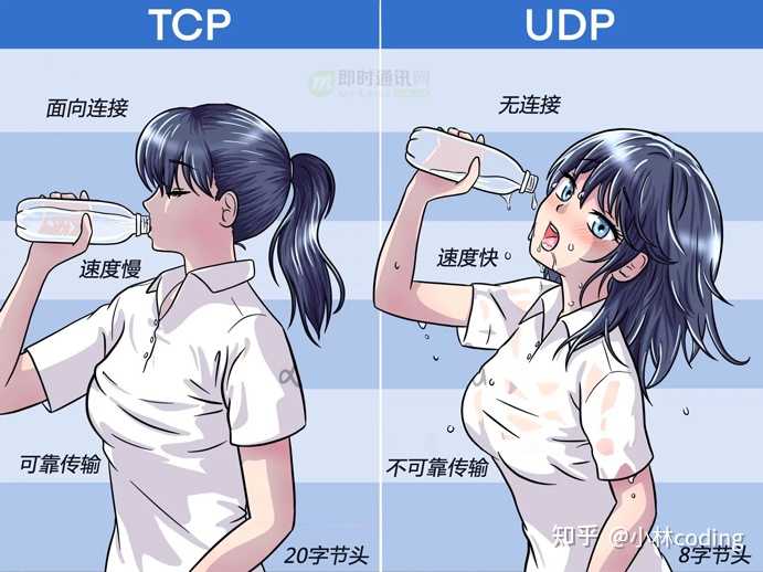 哈哈,上面的图,大家看个乐就好,接下来,我从 7 个方面说说 TCP 和 UDP 区别。