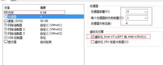12、内存建议大于4096;处理器数量(P):4,每个处理器的内核数量(C):1–>确保是“虚拟化Intel VT -x/EPT 或 AMD-V/RVI(V)”