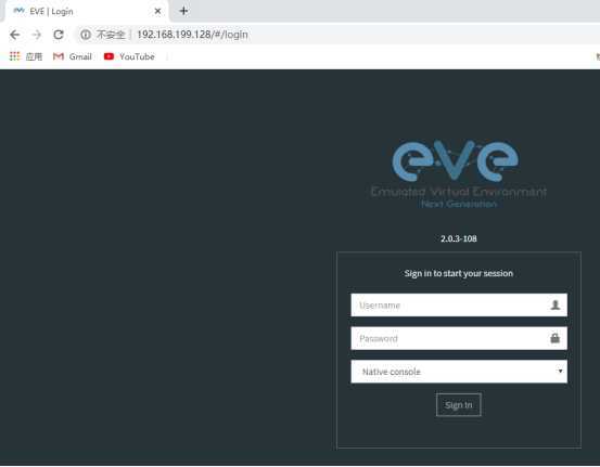 1、在谷歌浏览器输入ip地址192.168.199.128(推荐使用谷歌浏览器) 默认账户:admin 默认密码:eve