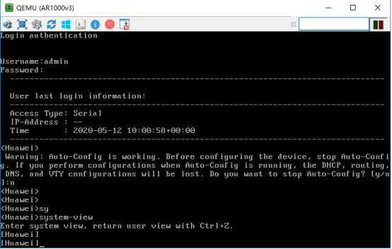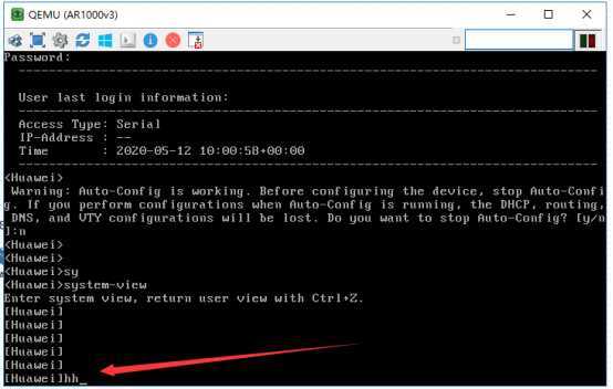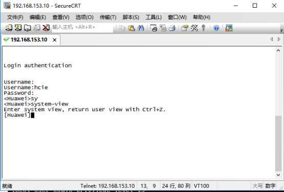 31、输入用户名hcie,密码hcie123456789回车–>进入设备配置界面
