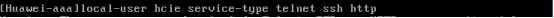 Aaa Local-user hcie password cipher hcie123456789 privilege level 15Local-user hcie service-type telnet ssh http