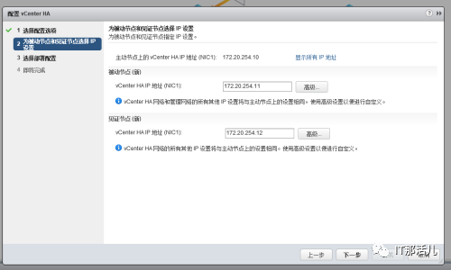 4. 前面的准备工作没做到这就会报错,这里选择“基本”。5. 配置vCenter HA IP节点地址,要跟主动节点的vCenter HA IP地址处于同一网段。