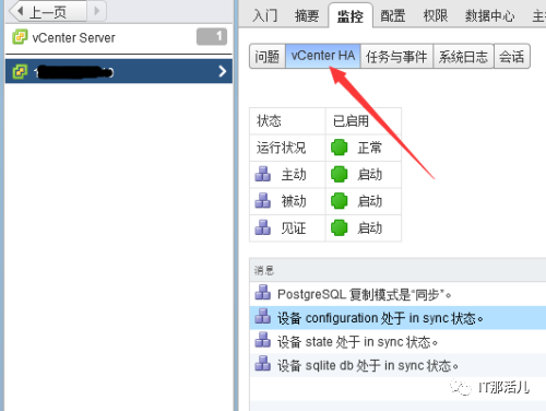 8. 配置完成后会在监控中多出vCenter HA的选项。10. 服务继续可用,前提是SSH登录一定要启用,忘记启用也没关系,此时vCenter Server Appliance还是可用的,登录进去启用HA服务即生效。