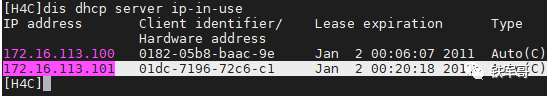 可以看到,客户端的MAC地址显示比正常的多了两位,前两位为Client identifier,代表硬件类型,此处值为01,即表示以太网。