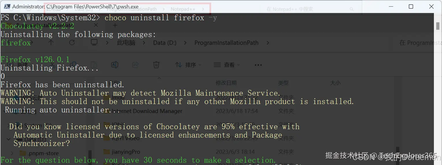 通过 Chocolatey 卸载 FireFox 和 NotePad++