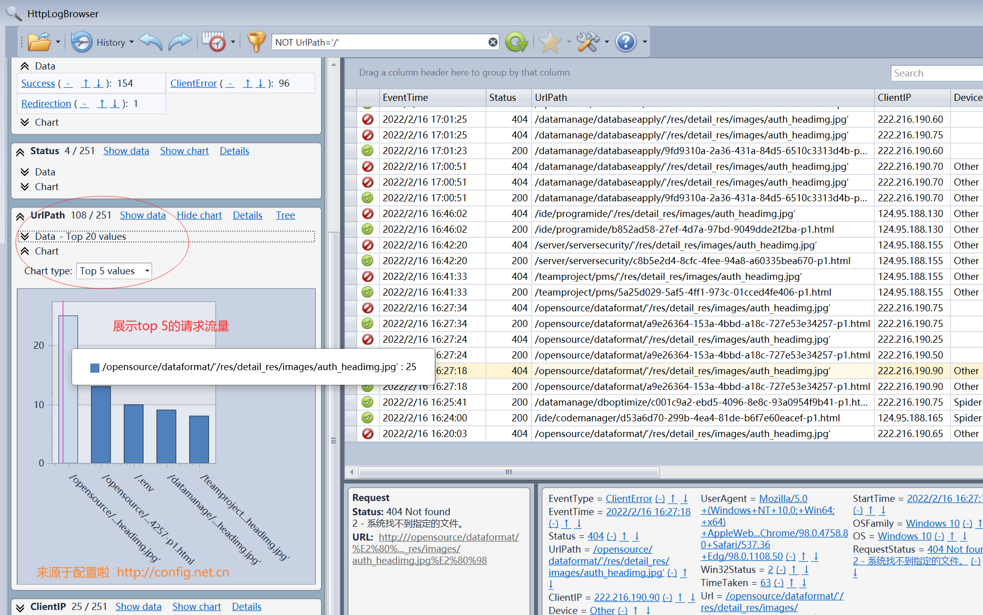 微软官方推荐的IIS Log分析工具: HttpLogBrowser -支持多维度,图表化流量分析