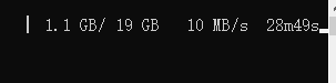 如果像上面这样能得到MB以上的速度,就说明网络已经非常好了,实际上过一会儿就会降到几百KB,很慢,这个时候,我们只需要 Ctrl + C ,然后,重新输入下载的命令速度就会提升上来,重复此过程,可以加快下载。