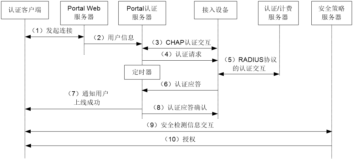 步骤(9)、(10)为Portal认证安全扩展功能的交互过程。