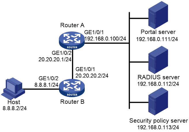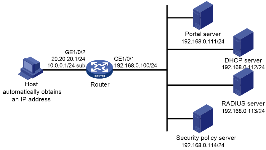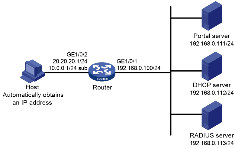 [Router-GigabitEthernet1/0/2] portal apply web-server newpt