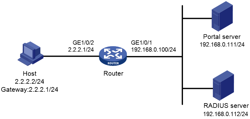 [Router-GigabitEthernet1/0/2] portal bas-ip 2.2.2.1