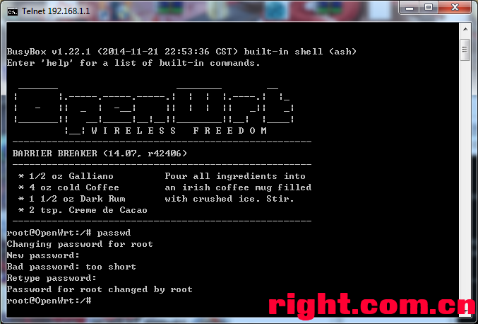 2. 使用 telnet 登录路由设置密码(针对没有 LuCI 的固件):