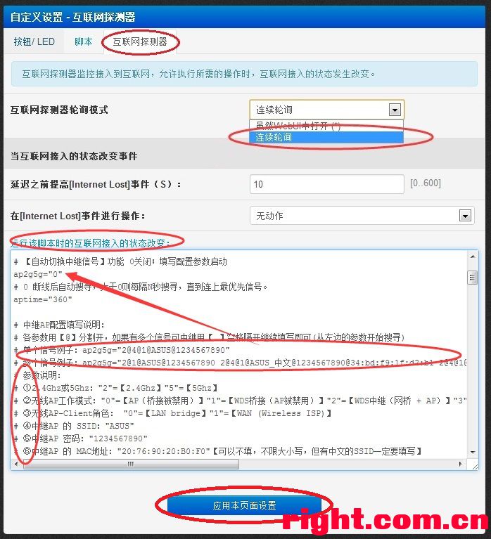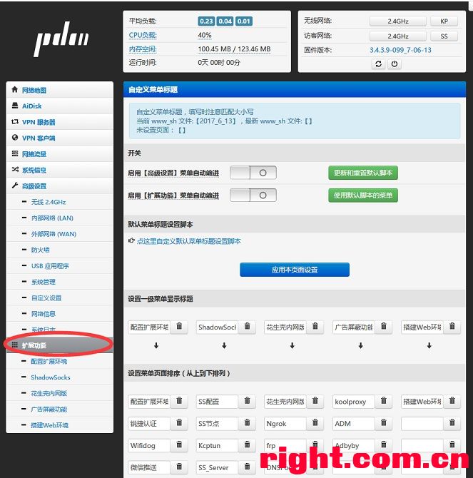 本帖最后由 hiboyhiboyhiboy 于 2019-3-5 07:57 编辑 固件是免费、开源 这固件是从Padavan固件源码:https://bitbucket.org/padavan/rt-n56u/src搬运源码汉化后编译出来的。如有需要可以到此帖下面汉化文件自行编译。(HowToMakeFirmware编译教程见) 清除配置方法: 由于刷机不清除配置,如果按键10秒也不能清除配置,或者开机后不能启动,可能是配置冲突,需要手动清除配置(nvram)重置机器。 (操作前备份编程器固件以备不时之需(已经备份可以跳过)) 清除方法:进入breed - 恢复出厂设置 - 选择 【Config 分区 公版】- 上传华硕固件 - 更新 如果出现升级固件后没更新内容,可以换其他浏览器试试,因为有些IE内核浏览器的兼容问题导致升级固件失败。如果aria2配置失败也可能是兼容问题,建议换用Chrome浏览器 由于有些路由兼容性问题,中继显示连接失败,可以试试改WIFI的信道带宽20MHz。有网友试过改WIFI的信道带宽20MHz后中继连接正常。 有些路由reboot或在WEB管理页面和BREED页面点击重启按钮卡死,是由于部分路由的闪存、内存体质问题。可以尝试降频,或刷低版本的breed试试。 断电重启会丢脚本,正确保存脚本方法:方法①:系统管理 - 恢复/导出/上传设置 - 路由器内部存储 (/etc/storage) - 【写入】 方法②: 管理页面右键按钮软重启。 方法③:Telnet输入命令 【mtd_storage.sh save】 手动修改系统时间:SSH 或 控制台输入:date -s "2016-7-16 21:49:36" 老毛子Padavan固件发布 http://t.me/pdcn1 老毛子Padavan固件自助交流群 http://t.me/pdcn2 老毛子Padavan固件IOS自助交流群 http://t.me/pdcn3 支持石头213的APP,一看就是觉得高端、大气、上档次! 啪嗒路由器app,适配Padavan老毛子固件的手机端控制app https://www.right.com.cn/forum/thread-315066-1-1.html 更多高级功能教程网站:rt.cn2k.net 2018年11月6日 同步Padavan源码更新 源码更新内容:https://bitbucket.org/padavan/rt-n56u/commits/all 本次更新到: 32a93db 固件版本升到3.4.3.9-099 注意事项:配置说明看下面内容,有些路由刷入后WAN和LAN接口反转 很多附加功能都是脚本命令实现的,如果觉得启用功能太多导致不稳定,可以不启用附加功能,这样就是原版固件了,也可以清空脚本。 很多人启动S-S后不能用。估计是DNS被污染了。可以电脑设置:DNS自动获取路由的ip。电脑运行cmd输入【ipconfig /flushdns】,清理浏览器缓存。 更新说明: 下载地址:http://opt.cn2qq.com/padavan 下载地址:https://eyun.baidu.com/s/3pLMbUqR #一键自动更新固件脚本 wget --no-check-certificate -O- https://opt.cn2qq.com/opt-script/up.sh > /tmp/up.sh && bash < /tmp/up.sh # 2018-12-25:由于调整固件的内部存储分区,会导致FRP、V2Ray等等配置丢失,请提前导出保存 2019-03-05: 【1】调整某些型号固件的内部存储分区:刷入会重置(/etc/storage)恢复[脚本文件],导致FRP、V2Ray等等配置丢失,请提前导出保存。 【MI-3、MI-R3G、ZTEQ7-64M2、ZTEQ7-64M2S、M1-512M、newif2D1-256M、newif3D2-512M】 【2】新增tmall,让我们可以使用【天猫精灵】语音控制路由和电脑。 2019-01-02: 【脚本】修复上次版本(25、31)在管理页面修改自定义脚本时,未能正确保存【在按下 WPS/FN 按钮时执行:】脚本的问题 2018-12-31: 【脚本】修复启动多线程时导致UDP转发失效问题;更新FakeInChina【假装在中国】的伪装表 2018-12-25: 【脚本】新增ss多线程均衡负载;订阅时自动处理手动添加节点和订阅节点(订阅含🔗字符) 【固件】调整固件的内部存储分区:704KB ,刷入会重置(/etc/storage)恢复[脚本文件],导致FRP、V2Ray等等配置丢失,请提前导出保存( http://192.168.123.1/Advanced_SettingBackup_Content.asp ) 2018-12-10: 【脚本】修复curl下载HTTPS提示找不到证书问题。新增 filemanager 的 caddy 方式启用。(更新方法:停用 filemanager 后点击右边的「更新」按钮 2018-12-1: 【安全】修复2018-11-1至11-25版本存在允许多终端登录管理页面后导致的第二台终端登录时绕过密码的问题。 问题复现:没终端登录管理页面,管理页面存在密码保护。如果第一台终端登录并保持打开管理页面,第二台终端登录时取消输入密码提示能直接打开管理页面。 其他建议:由于管理页面对127.0.0.1的访问不做密码保护,建议对代理软件设置封锁127.0.0.1访问的配置。例如更新goflyway到1181129,删除v2ray_config_script里面的"127.0.0.0/8"直连配置,frp穿透路由不要填127.0.0.1而是填写192.168.123.1(路由器的IP)。 2018-11-20: 【opt】修复上一版本不能SD卡挂载 opt 的问题;修复非默认用户名不能启动 Web 环境的问题 2018-11-11: 【脚本】新增tgbot推送。新增K2P (未测试,128M,K2P_DRV: DRV编译,K2P: 杂交固件),感谢 hanwckf/rt-n56u 项目提供编译 2018-10-07: 【脚本】KoolProxy 更新到 v3.8.4。 2018-10-01: 【脚本】修复了 Aliddns 的 IPv6 添加记录问题。 2018-09-23: 【脚本】SS 现在能使用只有 IPv6 地址的域名。 2018-09-15: 【脚本】修复 verysync(更新脚本)、filebrowser(更新主程序) 启动问题和 ddns 获取 IP 错误问题。 2018-09-01: 【脚本】新增 域名、 IP 规则更新的自定义下载地址。 2018-08-25: 【脚本】修复启用translate功能时web管理页面https不能登录的问题。启用translate功能需等待十几秒后恢复web页面显示。 2018-08-18: 【新增】新增translate功能,使用【谷歌翻译】翻译管理页面的内容。 2018-06-24: 【脚本】新增多次检测断线后执行功能,提高无线访问控制名单上限。 2018-06-18: 【脚本】新增transocks、腾讯云(qcloud) 云解析。 2018-06-05: 【脚本】现更换https方式下载文件,由于近期出现http连接被
