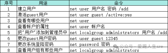 net user:查看或修改本地用户账户信息(如创建、删除用户)。