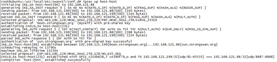 root@ubuntu:/usr/local/etc/swanctl# swanctl --load-all loaded ike secret 'ike-host-host' no authorities found, 0 unloaded no pools found, 0 unloaded loaded connection 'host-host' //注:此处的host-host就是之前在swanctl.conf中定义的successfully loaded 1 connections, 0 unloaded
