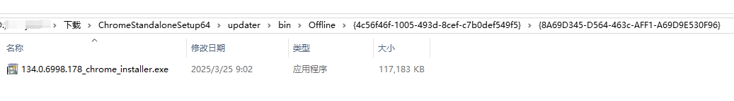 通过链接下载的离线包后,直接解压ChromeStandaloneSetup64.exe文件 ,遇到解压错误也没关系。