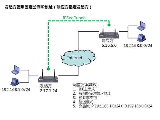 1. 发起方、响应方的IP地址都是固定不变的,采取了响应方指定发起方的配置方式;