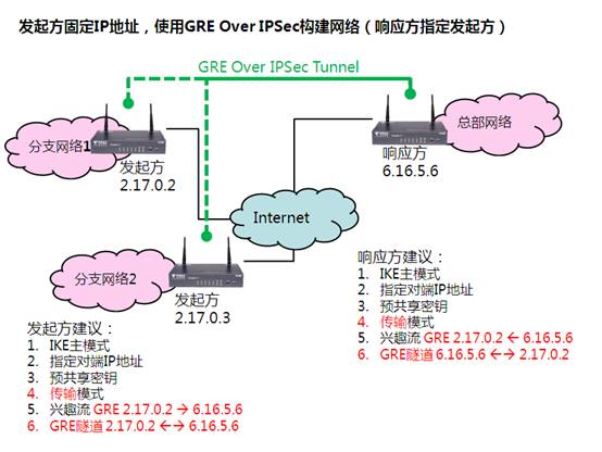 GRE隧道的特点是要求隧道的源、目的必须是固定的,因此在这种环境中: