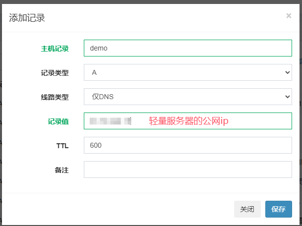 把域名解析到轻量服务器的 IP 上面。需要注意的是,如果使用的是国内的轻量服务器,按照相关规定还需要先完成备案哦。在本次演示中,我使用的是二级域名来进行操作展示,方便大家理解整个流程。