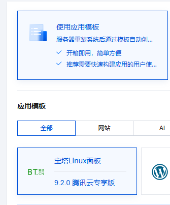 我们可以使用轻量云服务器的宝塔应用模版来安装系统,这种方式操作相对便捷,适合大多数新手用户。当然了,如果您对服务器安装操作比较熟悉,也可以自行安装宝塔面板。