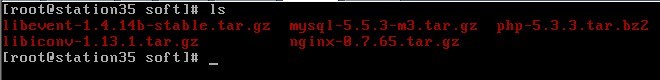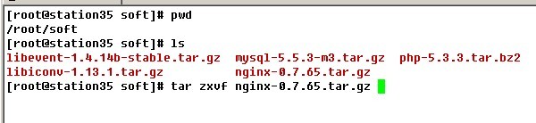 好了安装完开发环境下面就开始源码安装LEMP组件了 Nginx首先进入你源码包的目录,笔者放置的目录是/root/soft