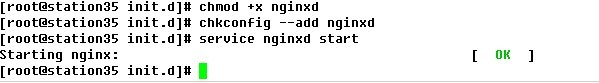 保存退出 并给/etc/init.d/nginxd 赋予执行权限