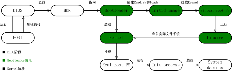 Linux 系统启动分为如下三个阶段: