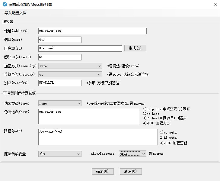 图.1 V2rayN配置使用 WebSocket 方式连接服务器