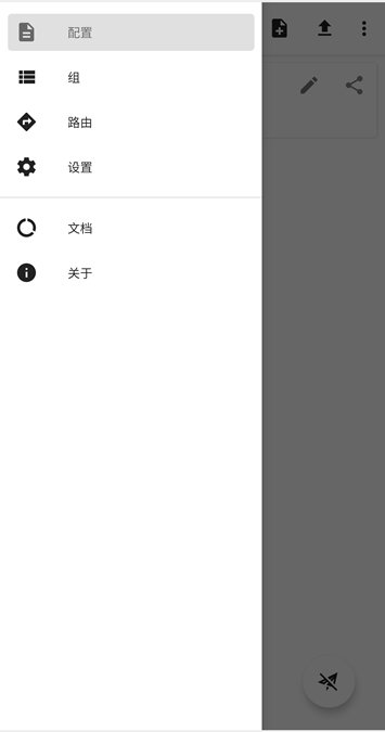 功能菜单有配置、组、路由、设置、文档以及关于共六个菜单项,其中配置用于配置代理服务器,组用于将代理服务器分组管理,路由用于域名访问规则,主要是设置是否代理国内域名 IP 等,设置用于设置 AnXray 本身的功能选项,至于文档及关于则是一些使用帮助及版本信息等。