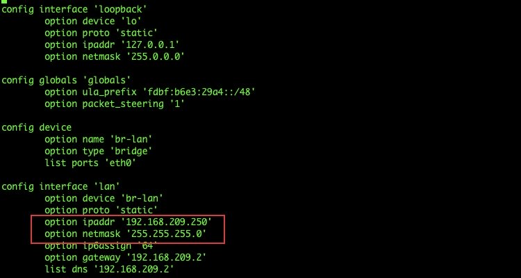图.5 修改 OpenWrt 管理界面 IP 地址
