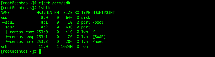 # eject /dev/sdb # lsblk