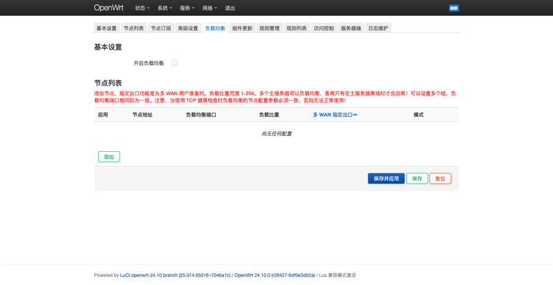 安装完成后,重启 OpenWrt 后,就可以在 Passwall 界面中看到负载均衡的标签页了。
