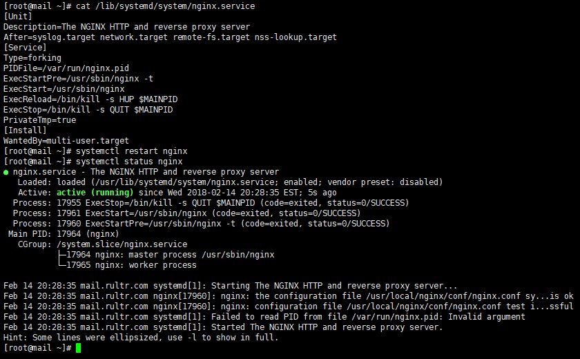 保存文件后就可以通过”systemctl”来管理Nginx服务了。示意图如下: