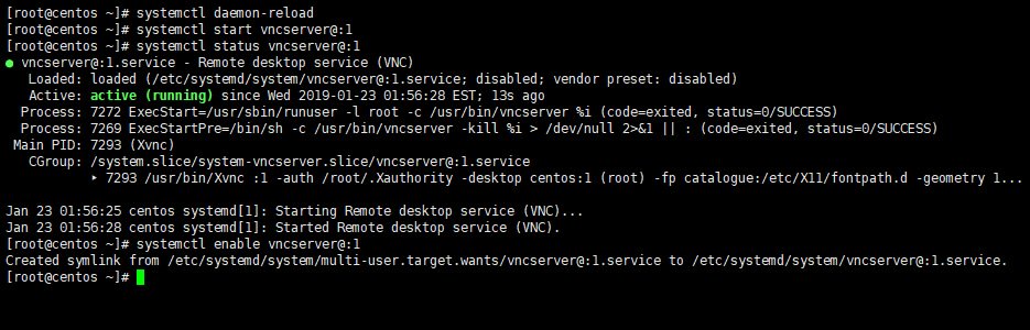 # systemctl daemon-reload # systemctl start vncserver@:1 # systemctl status vncserver@:1 # systemctl enable vncserver@:1
