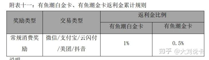 有鱼潮卡比例同步调整,消费门槛和多利白金一致。