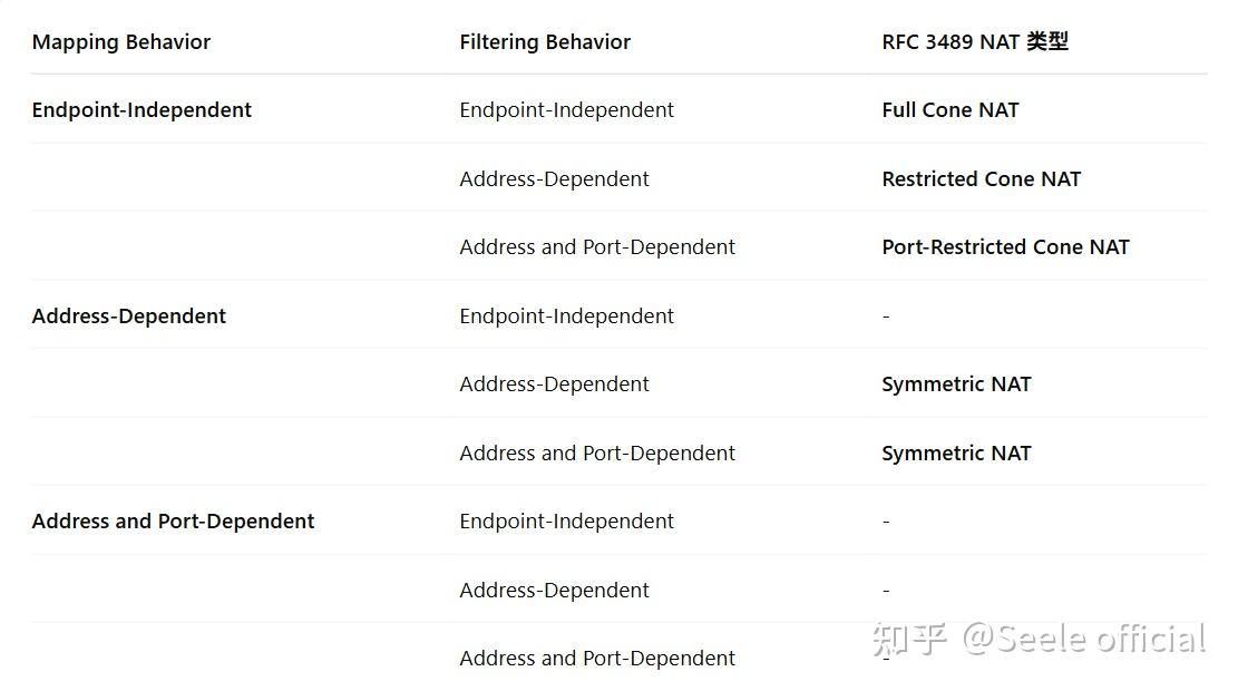 后来发现这些并不能完全对 NAT 进行归类,于是便有了 RFC 5780 (NAT Behavior Discovery Using STUN)
