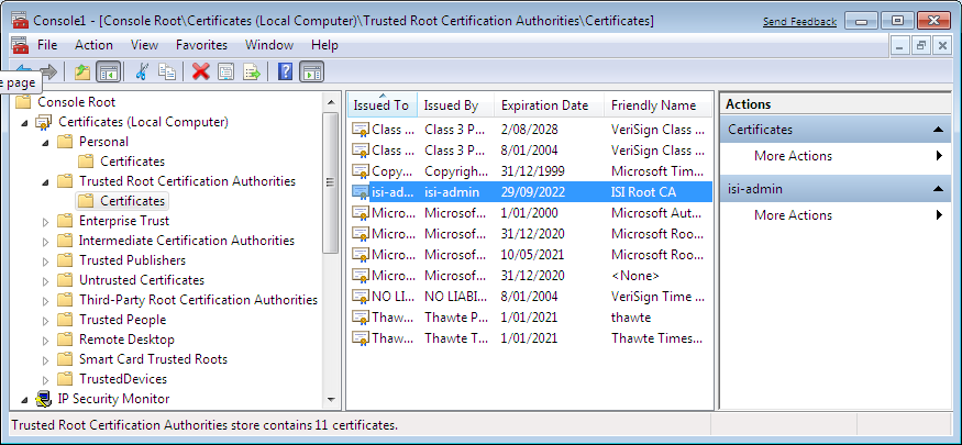 Go into the Certificates (Local Computer) / Trusted Root Certification Authorities / Certificates folder:
